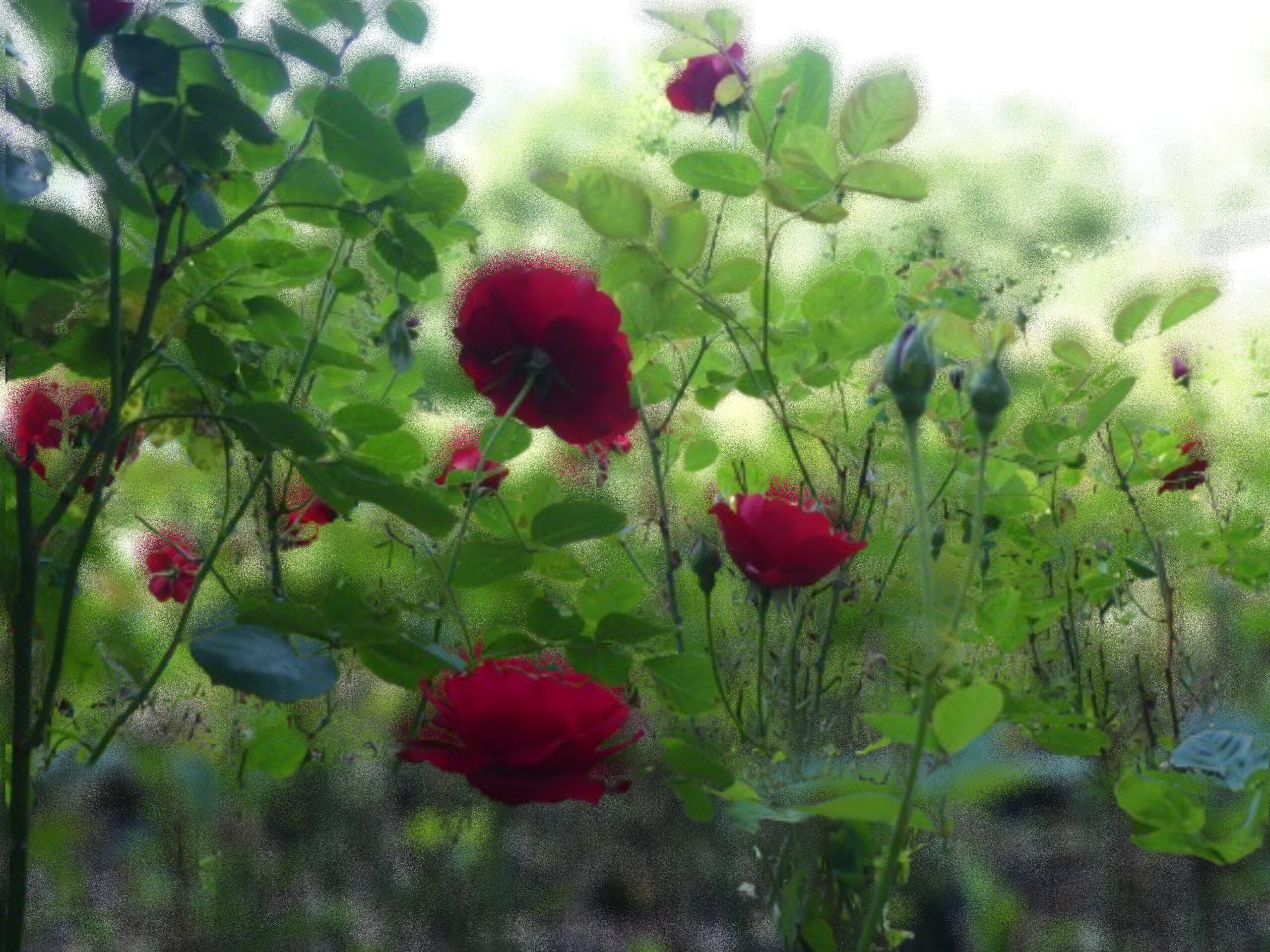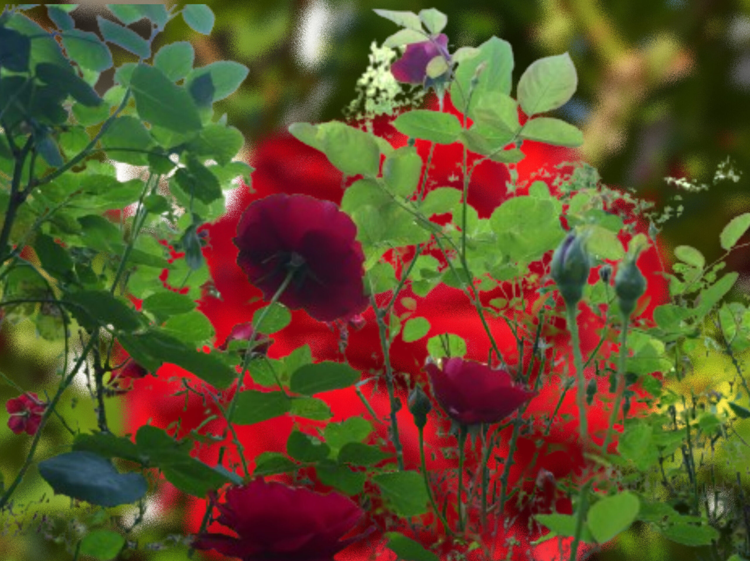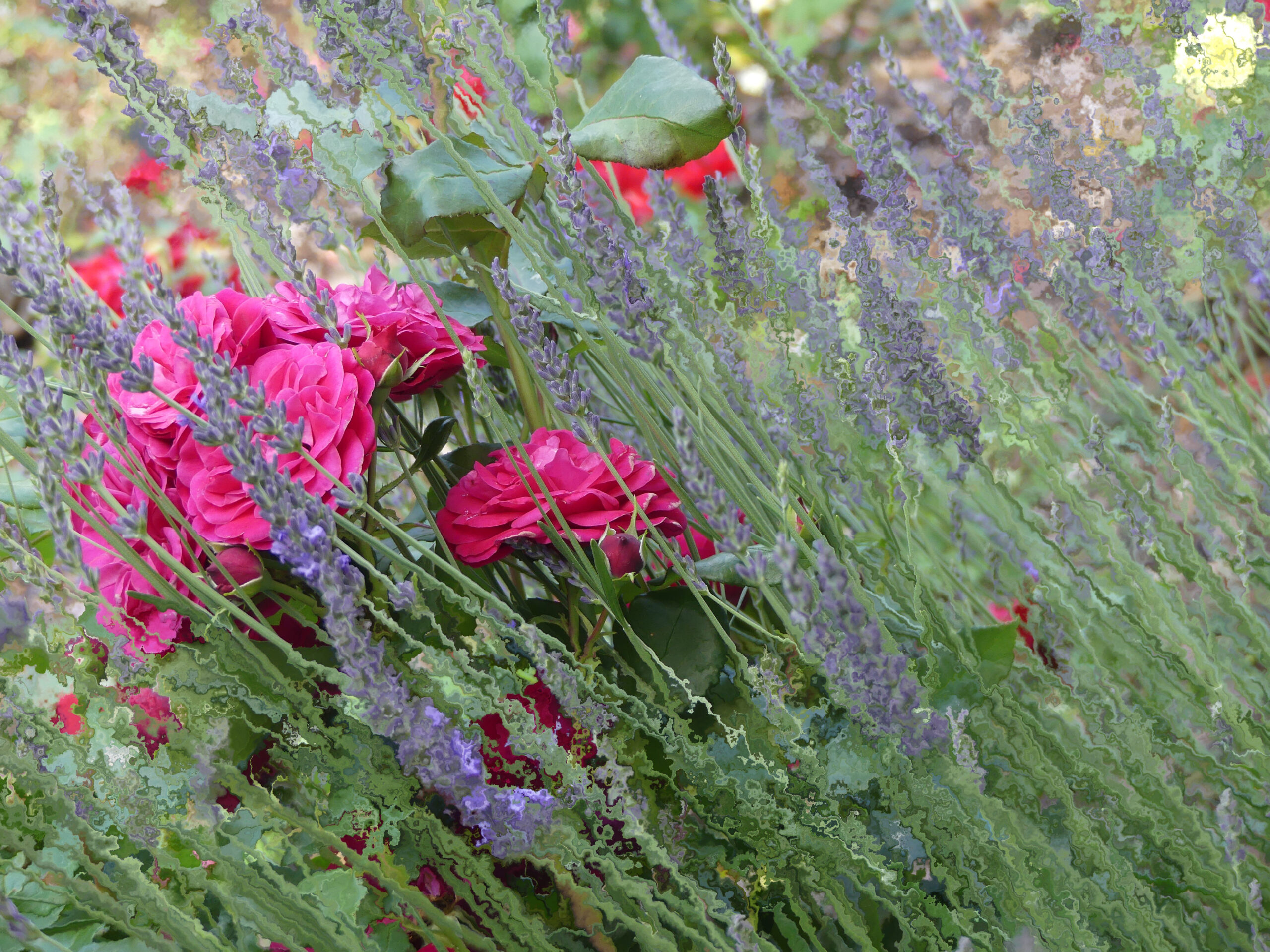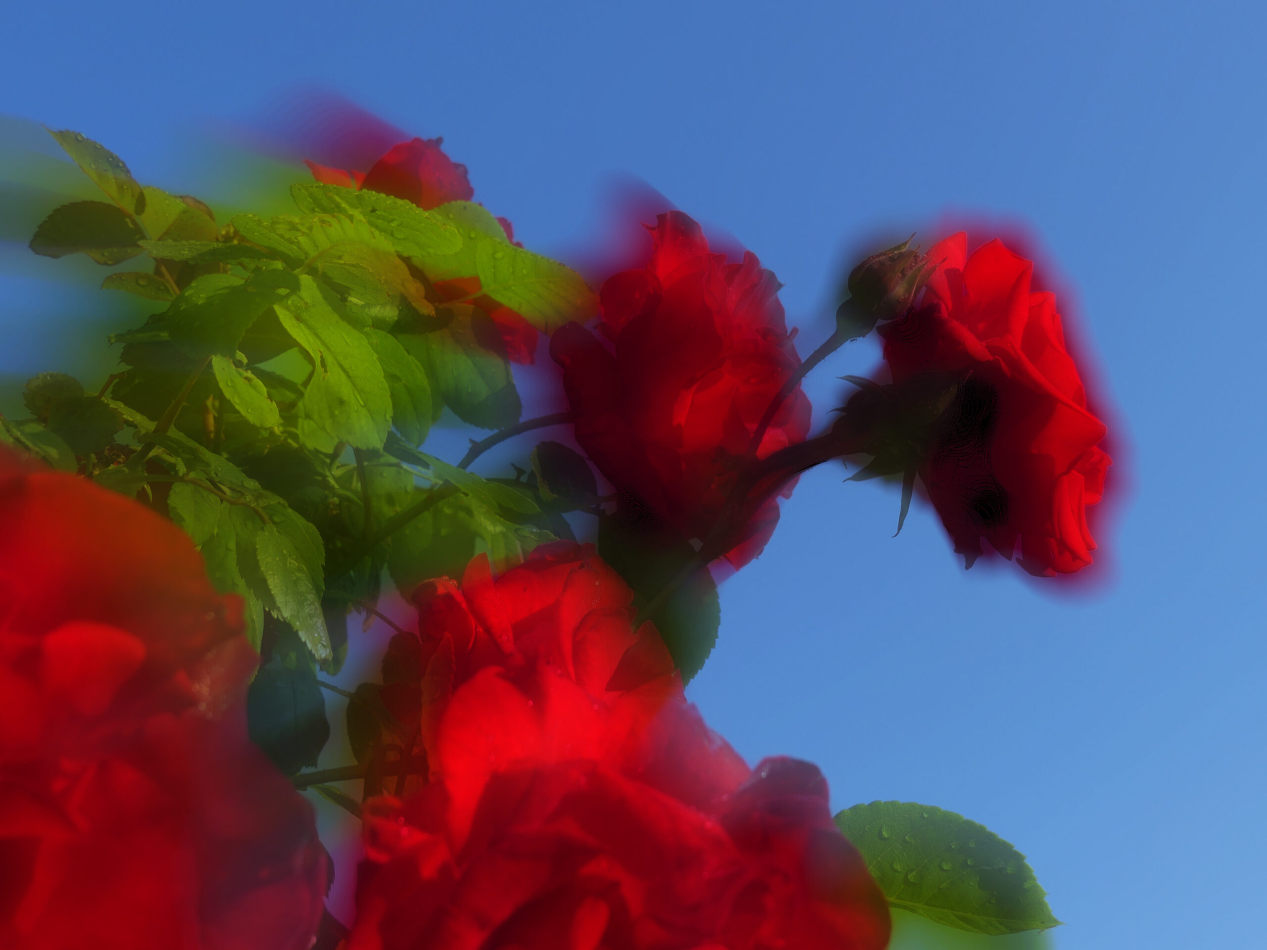 Natürlich musste ich trotz aller Schönheit die Rosenbilder bearbeiten. Ich suche nach bildlichen Ausdrücken, die über die Grenzen der Realität hinausgehen. Unterschiedliche Ergebnisse sind herausgekommen. Die Schönheit blieb hoffentlich bestehen, aber ich habe eine Tür geöffnet für andere Sichten.