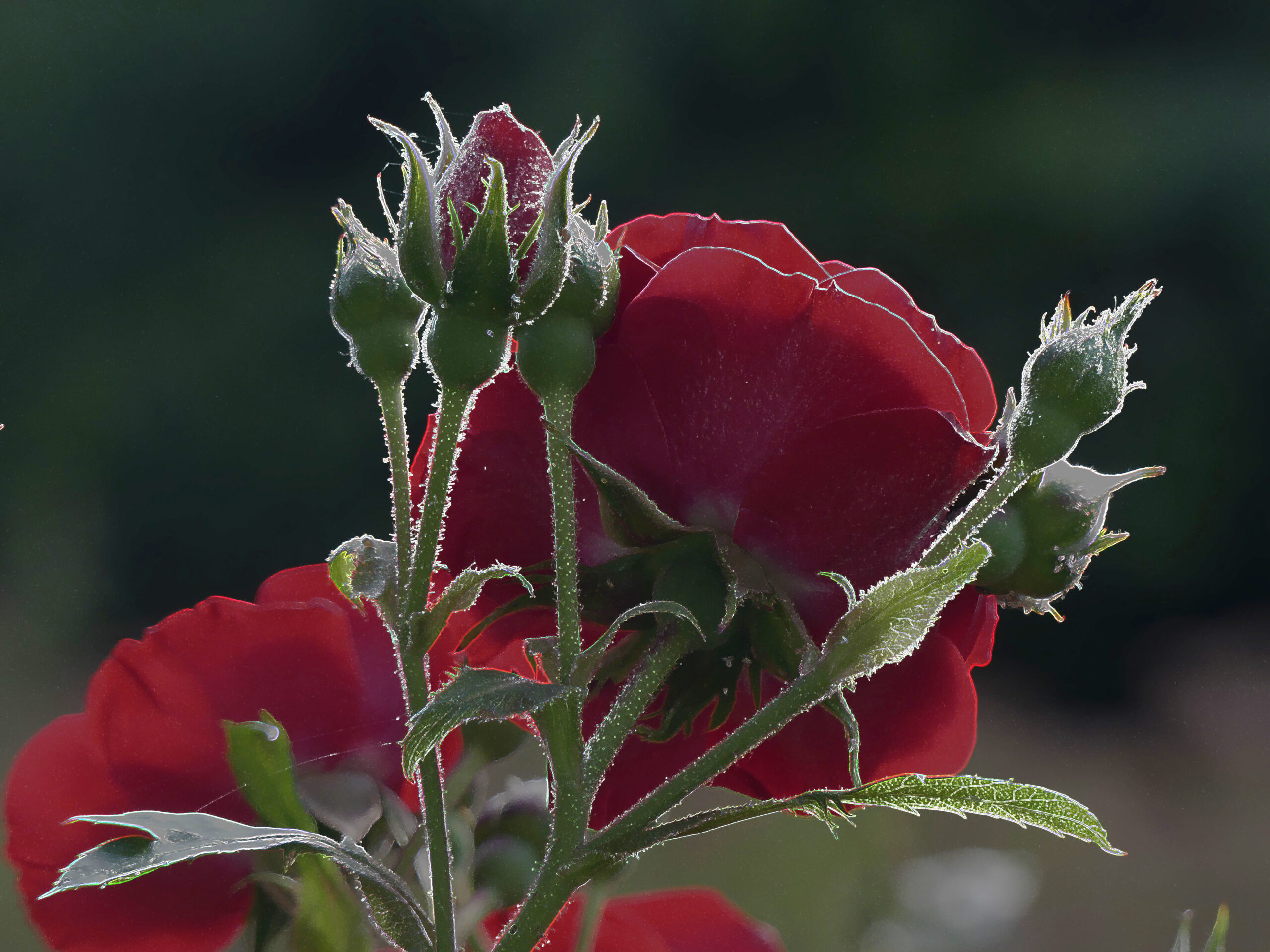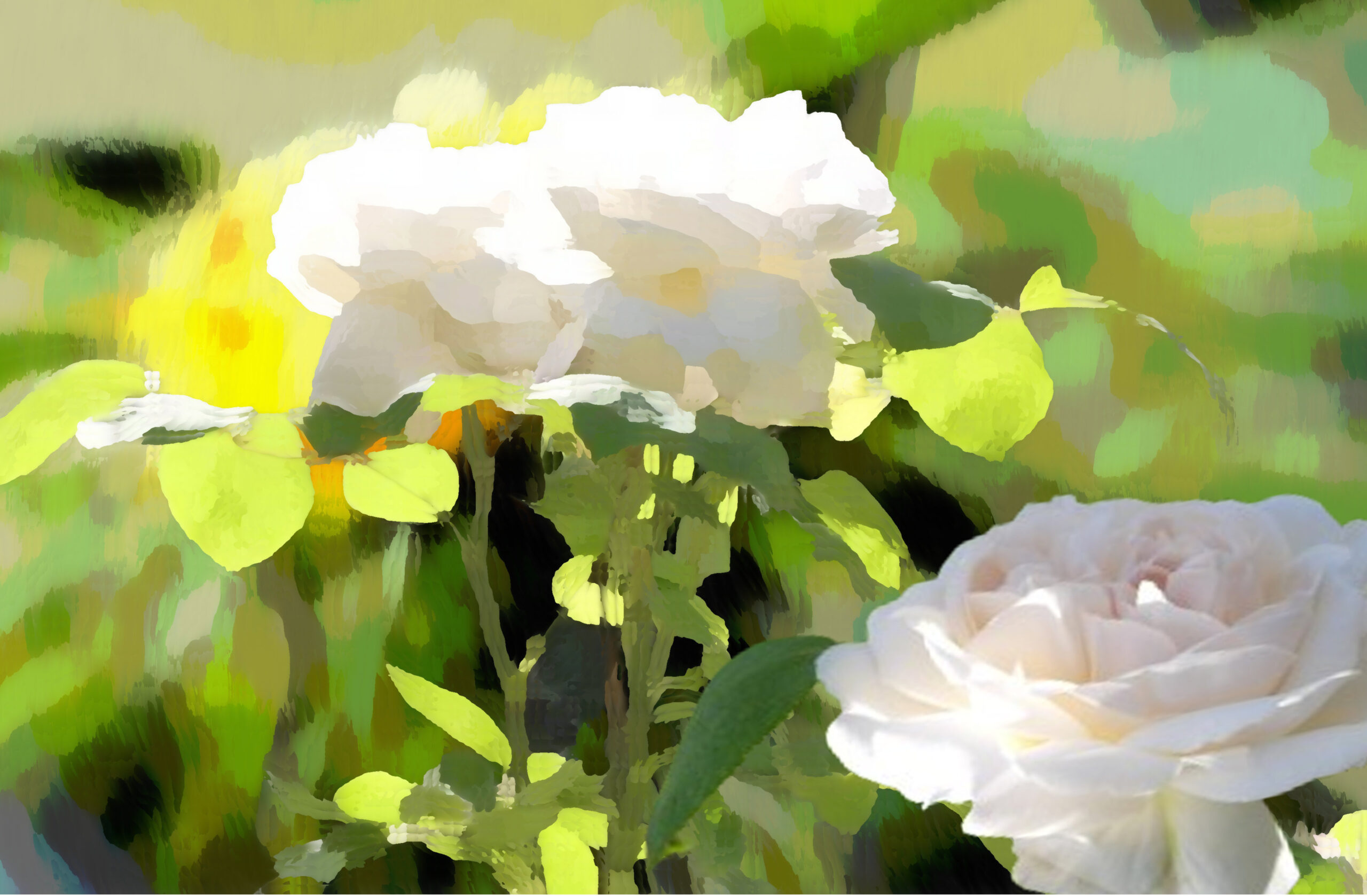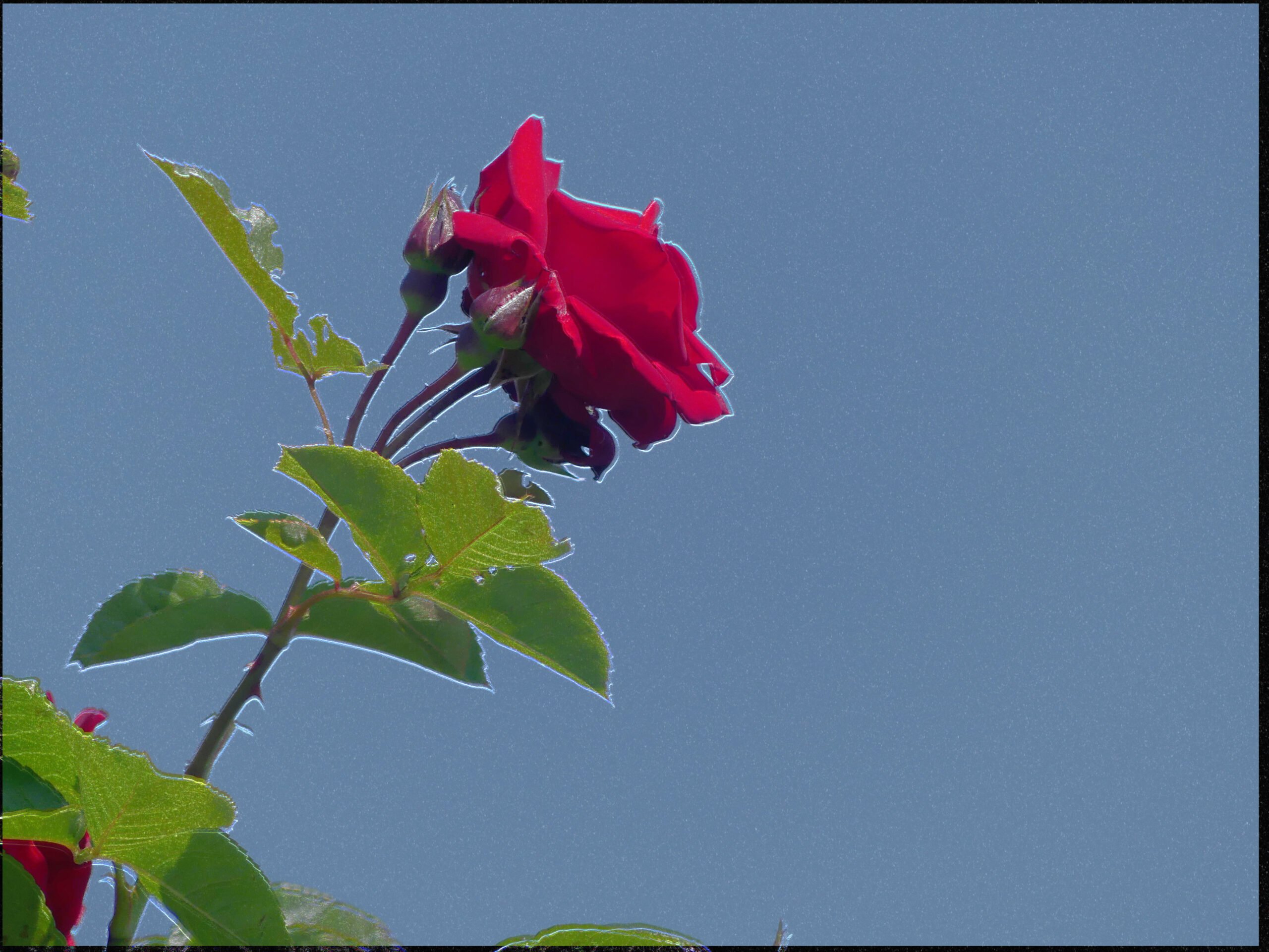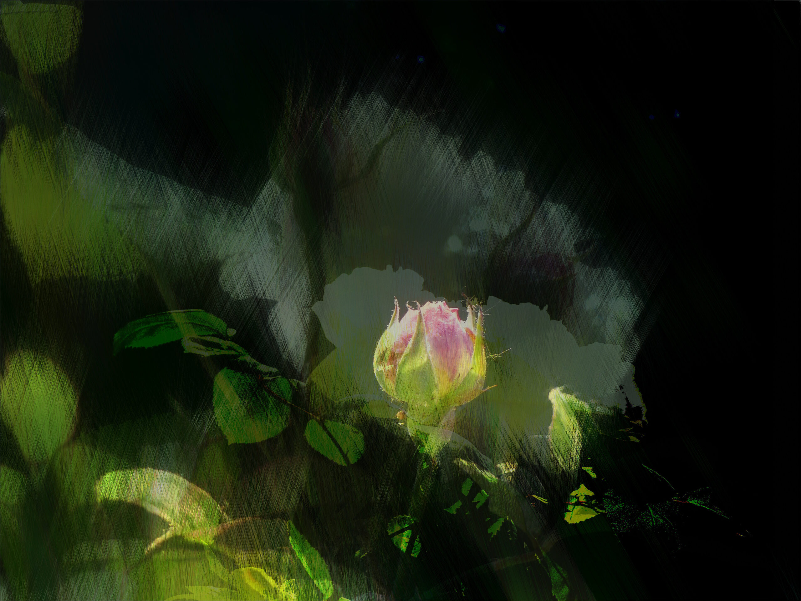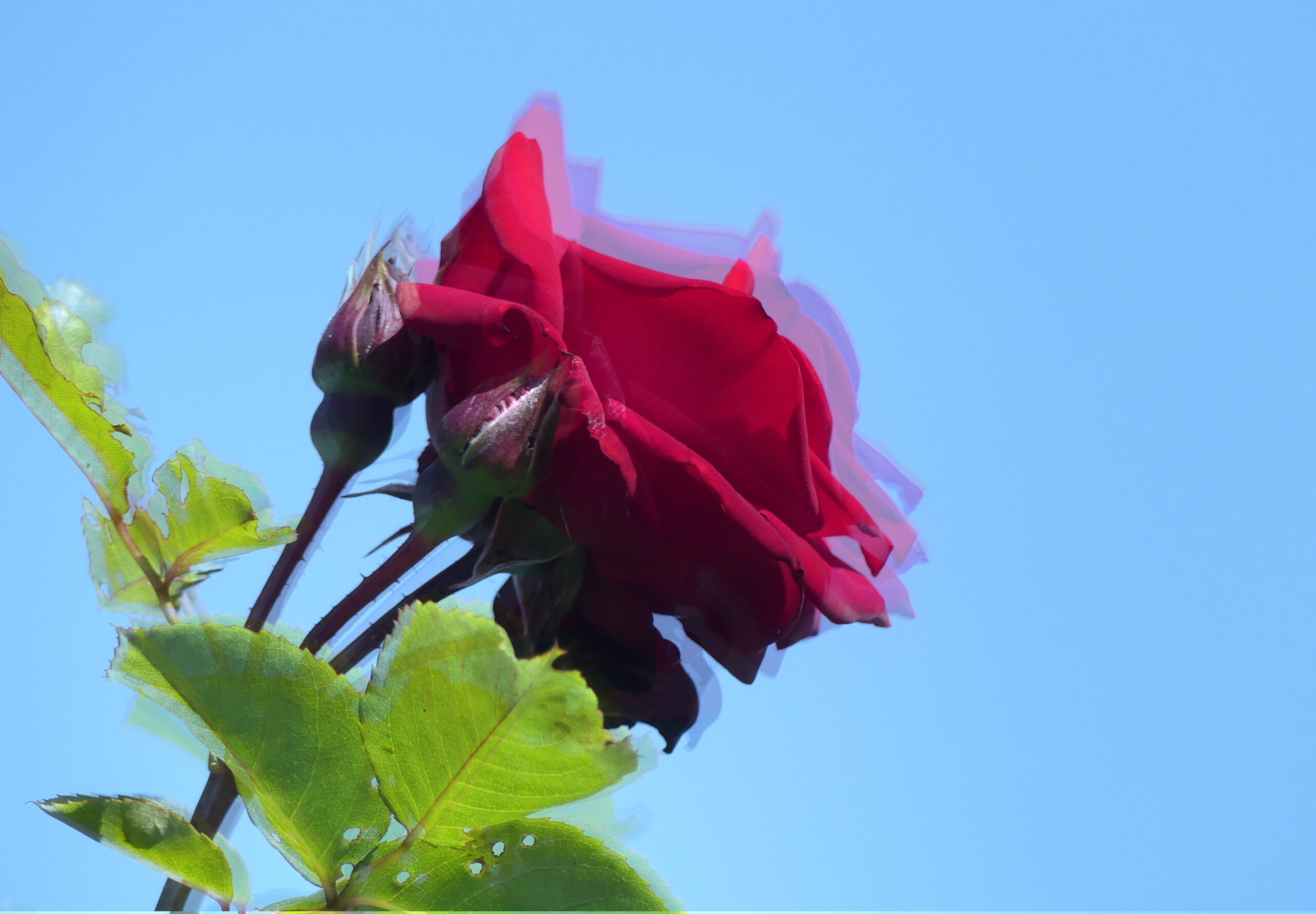 Natürlich musste ich trotz aller Schönheit die Rosenbilder bearbeiten. Ich suche nach bildlichen Ausdrücken, die über die Grenzen der Realität hinausgehen. Unterschiedliche Ergebnisse sind herausgekommen. Die Schönheit blieb hoffentlich bestehen, aber ich habe eine Tür geöffnet für andere Sichten.
