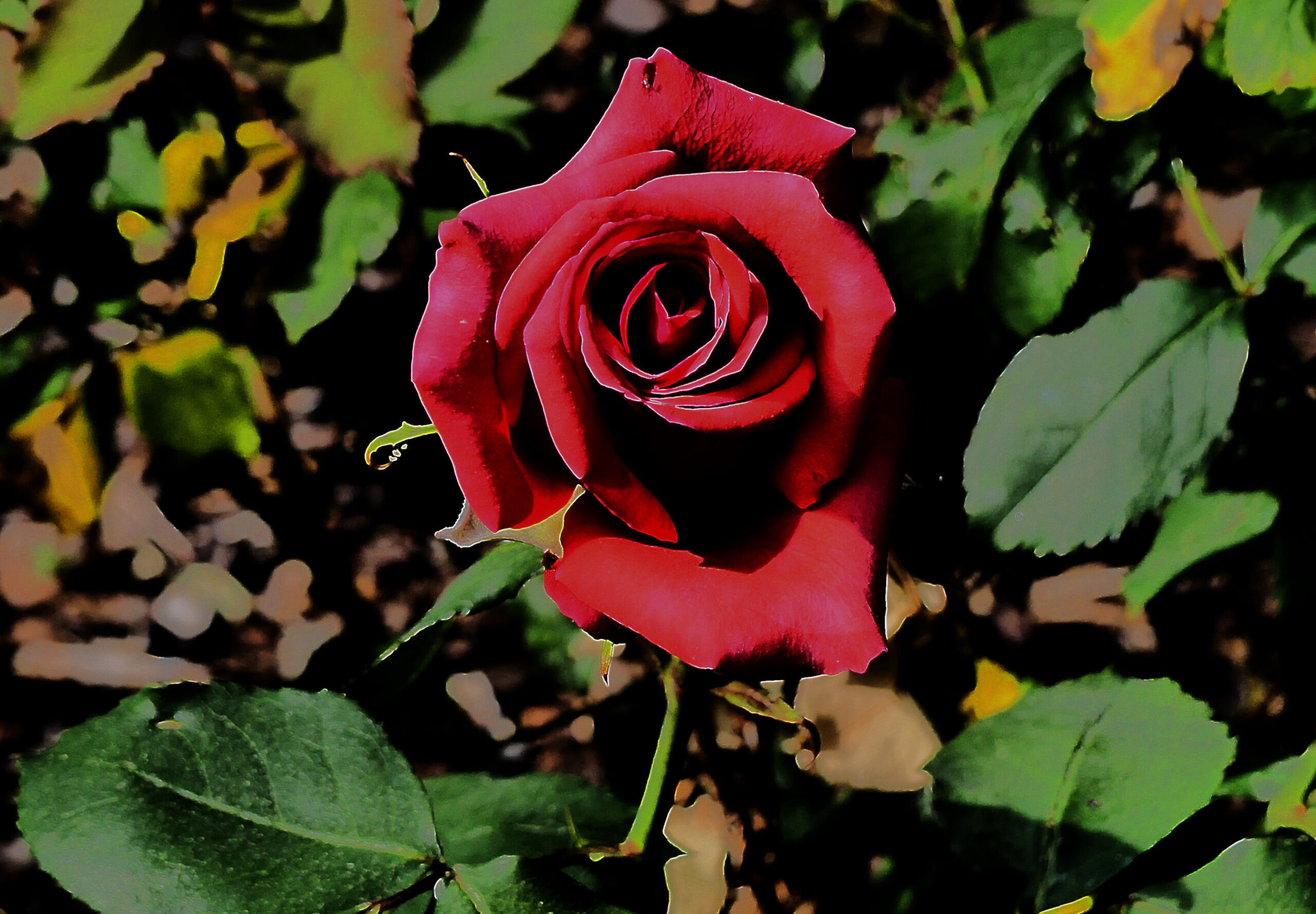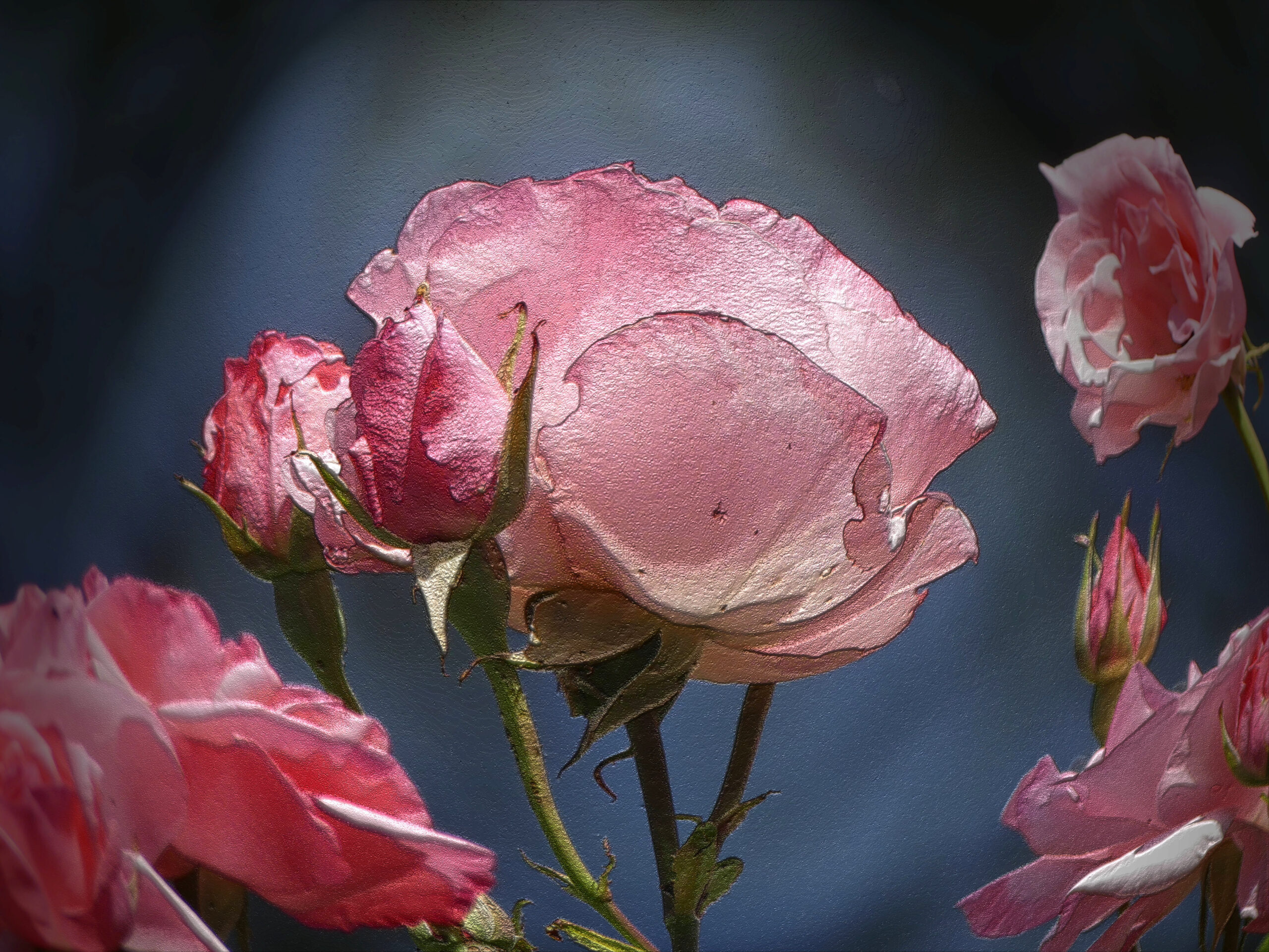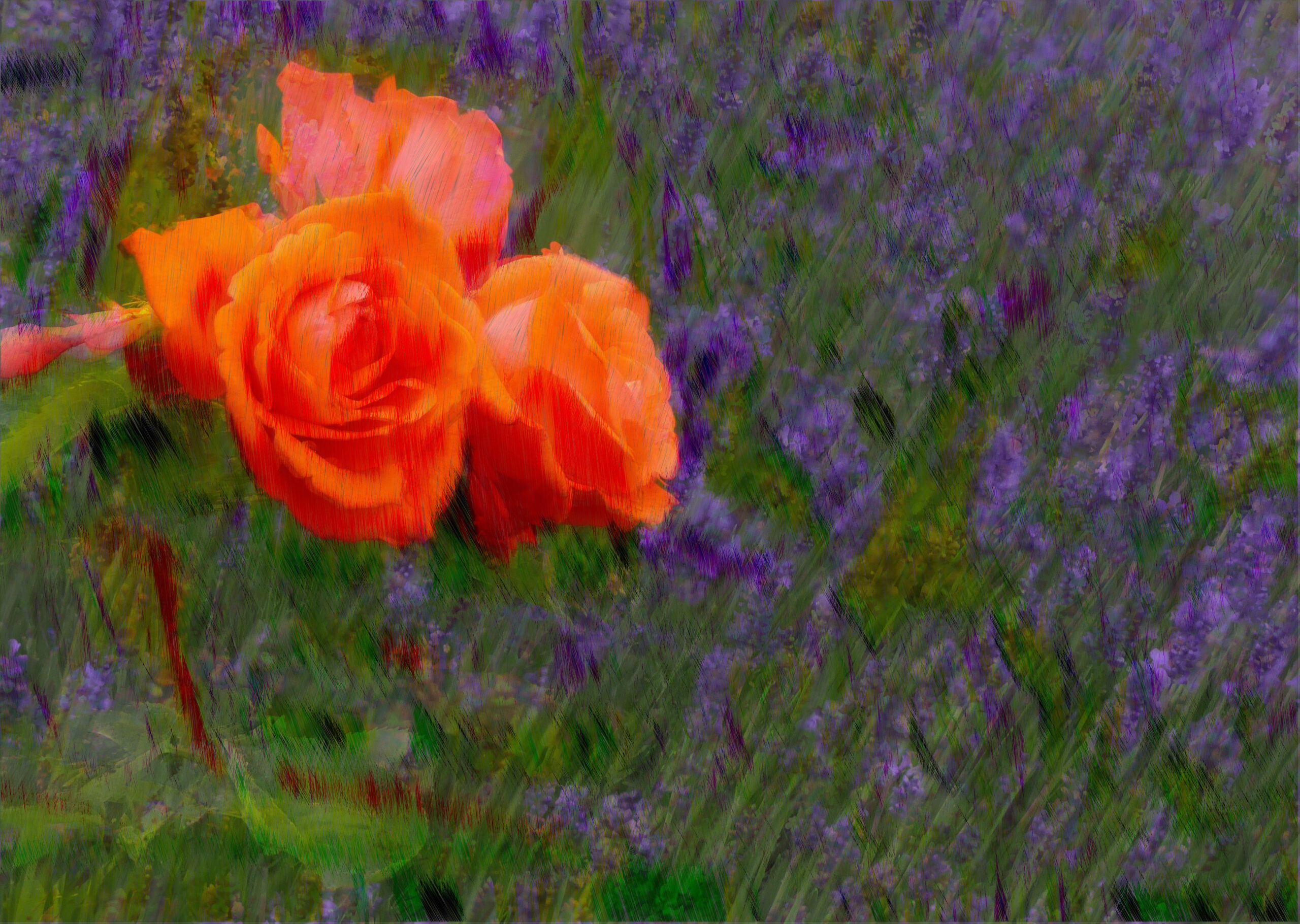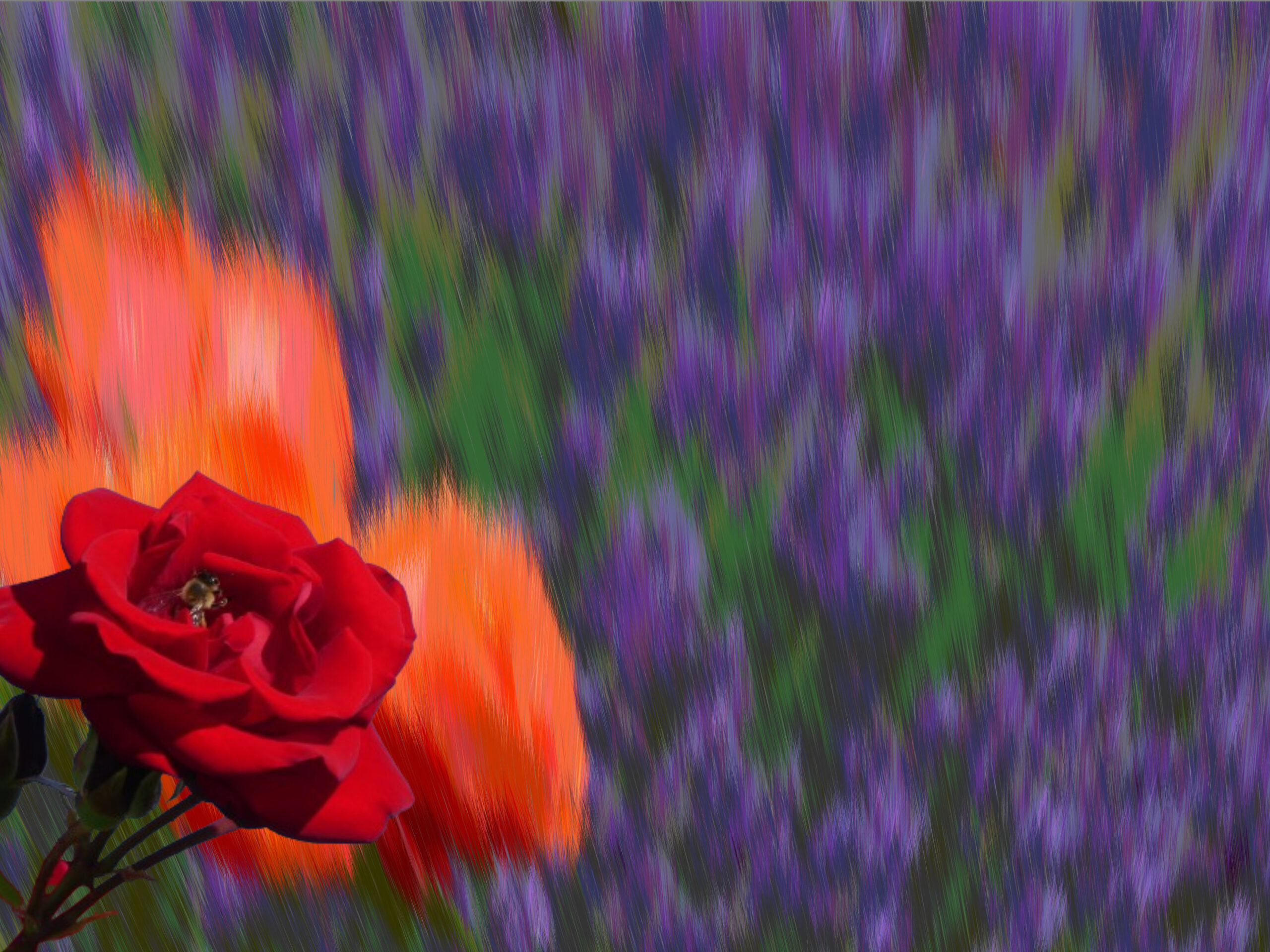 Natürlich musste ich trotz aller Schönheit die Rosenbilder bearbeiten. Ich suche nach bildlichen Ausdrücken, die über die Grenzen der Realität hinausgehen. Unterschiedliche Ergebnisse sind herausgekommen. Die Schönheit blieb hoffentlich bestehen, aber ich habe eine Tür geöffnet für andere Sichten.